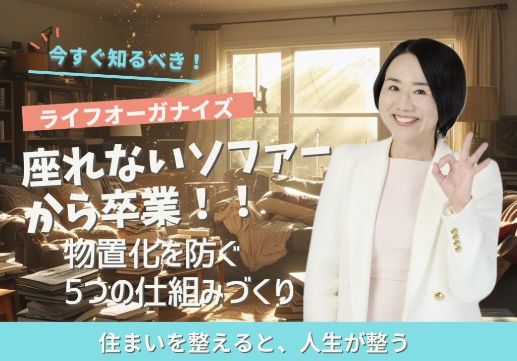 ライフオーガナイズは、単にモノを減らす片づけではなく「暮らしを自分らしくデザインする」こと。ぜひ一度、ご自宅のソファーを見直してみてください。そこから、家族の暮らしやすさが大きく変わっていきます。