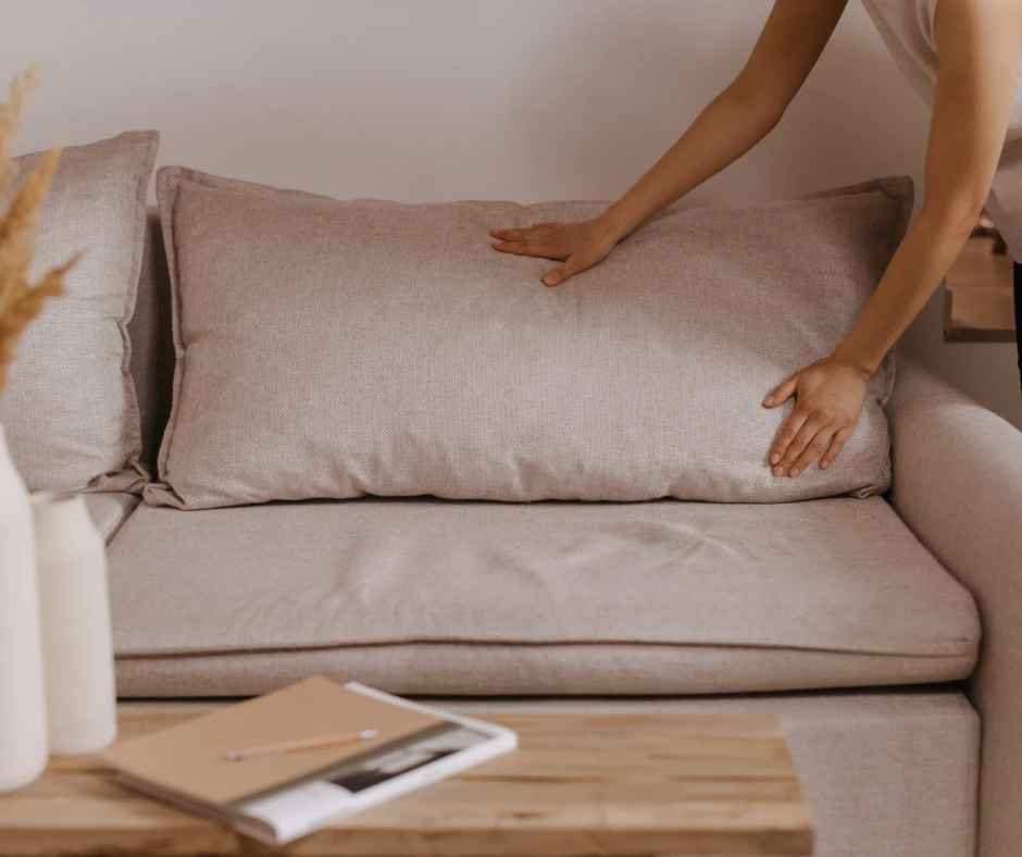 ソファーにモノを置いたら「定位置に戻す」声かけをする