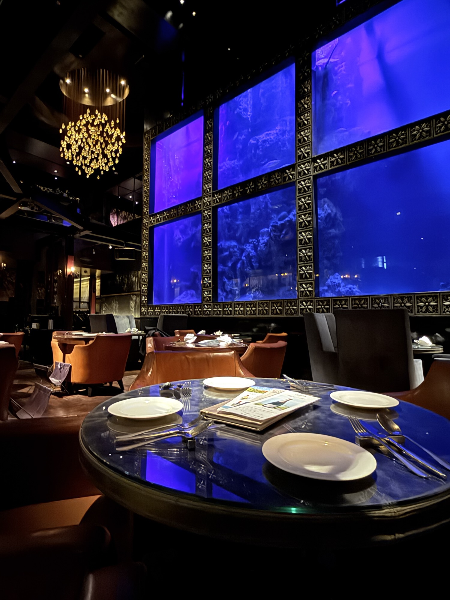 ゆらめく水の光、悠々と泳ぐ魚たち、深いブルーに包まれた空間は、自然と会話のトーンまでやわらげてくれます。
